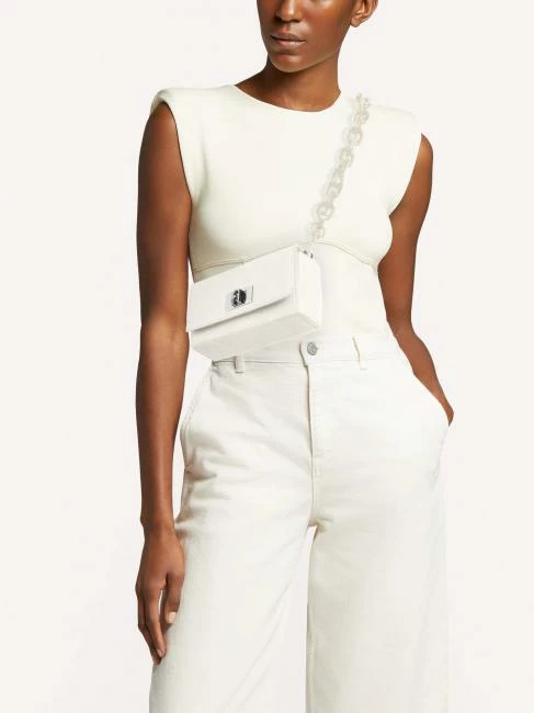 Realizzata in uno speciale tessuto carta cellulosa con certificazione FSC®, costruzione a scatola pieghevole ed apribile. Tracolla in acrilico riciclato